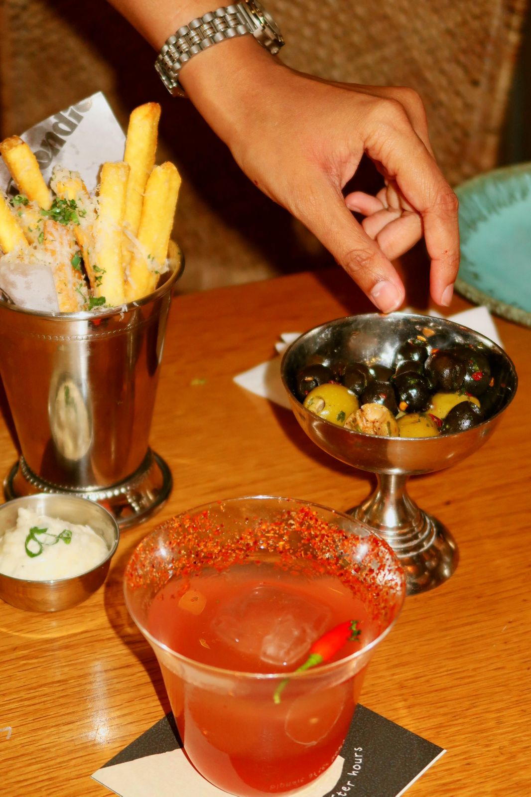 Complementing the drinks is Blondie’s lineup of flavour-packed bites, made for sharing between sips. Think Truffle Fries with parmesan and truffle garlic aioli, Kimchi Toasties with hot honey, and Gochujang Bao stuffed with spicy paneer or chicken. Coastal favourites like Prawn Pepper Fry sit comfortably alongside global flavours such as Olives & Feta and Chips & Dip dusted with curry leaf spice, creating a bar menu that is playful, punchy, and undeniably addictive.