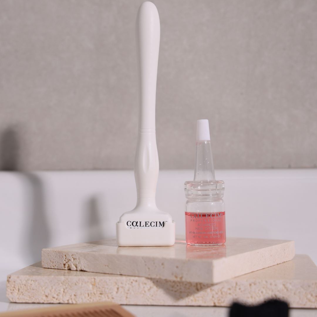 The CALECIM® Advanced Hair System offers a structured approach for optimal results. During the treatment phase, apply the solution twice a week using the derma stamper, with half an ampoule per treatment. The maintenance phase reduces to once a week with half an ampoule, lasting about three months. By alternating between treatment and maintenance phases, users can achieve and maintain fuller, healthier hair with visible results.