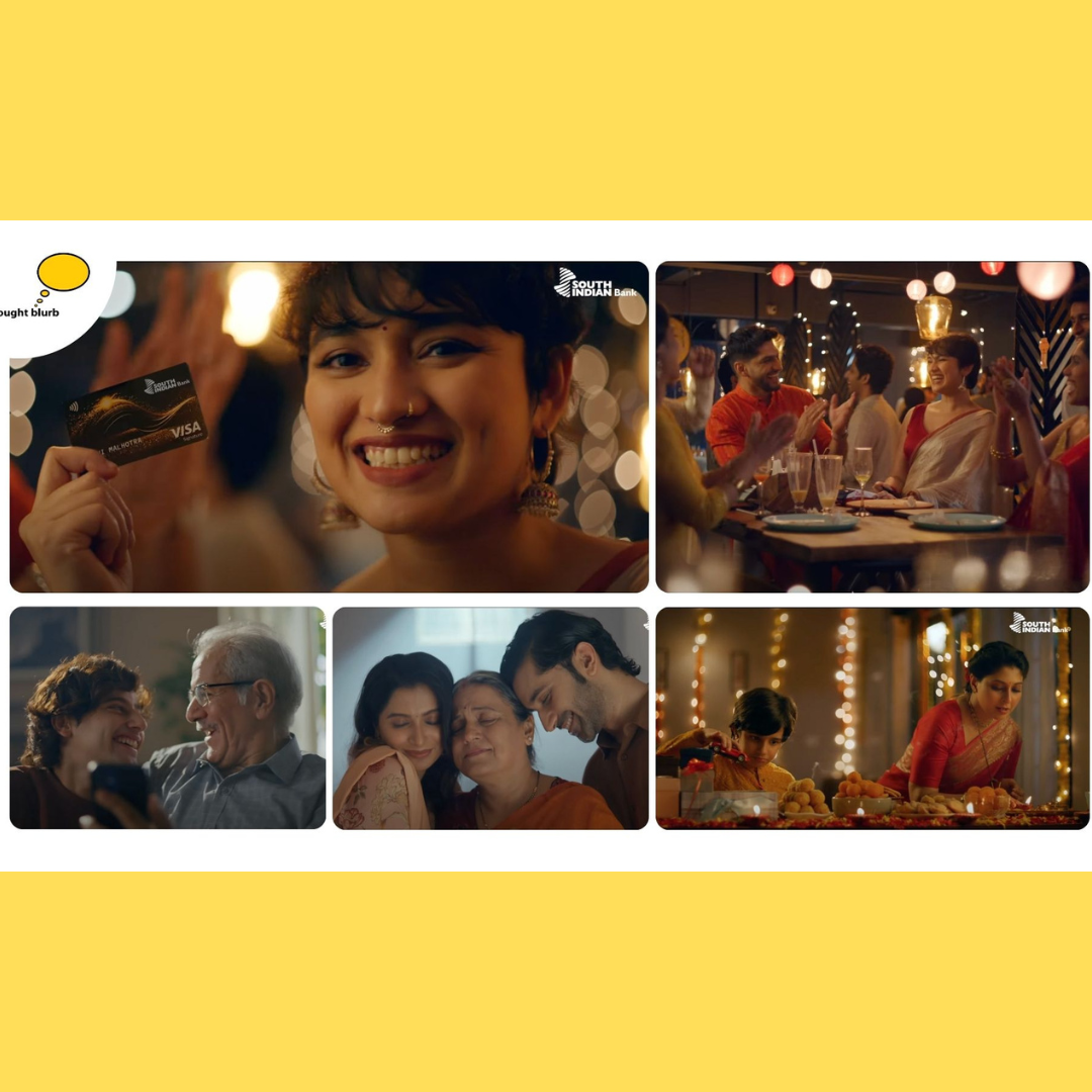 The year, South Indian Bank, released a film, created by Thought Blurb Communications that brought closer the distance between a holiday and a feeling of delight every individual feels in all joyous occasions. The campaign spoke about families, relationships and a sense of belonging.