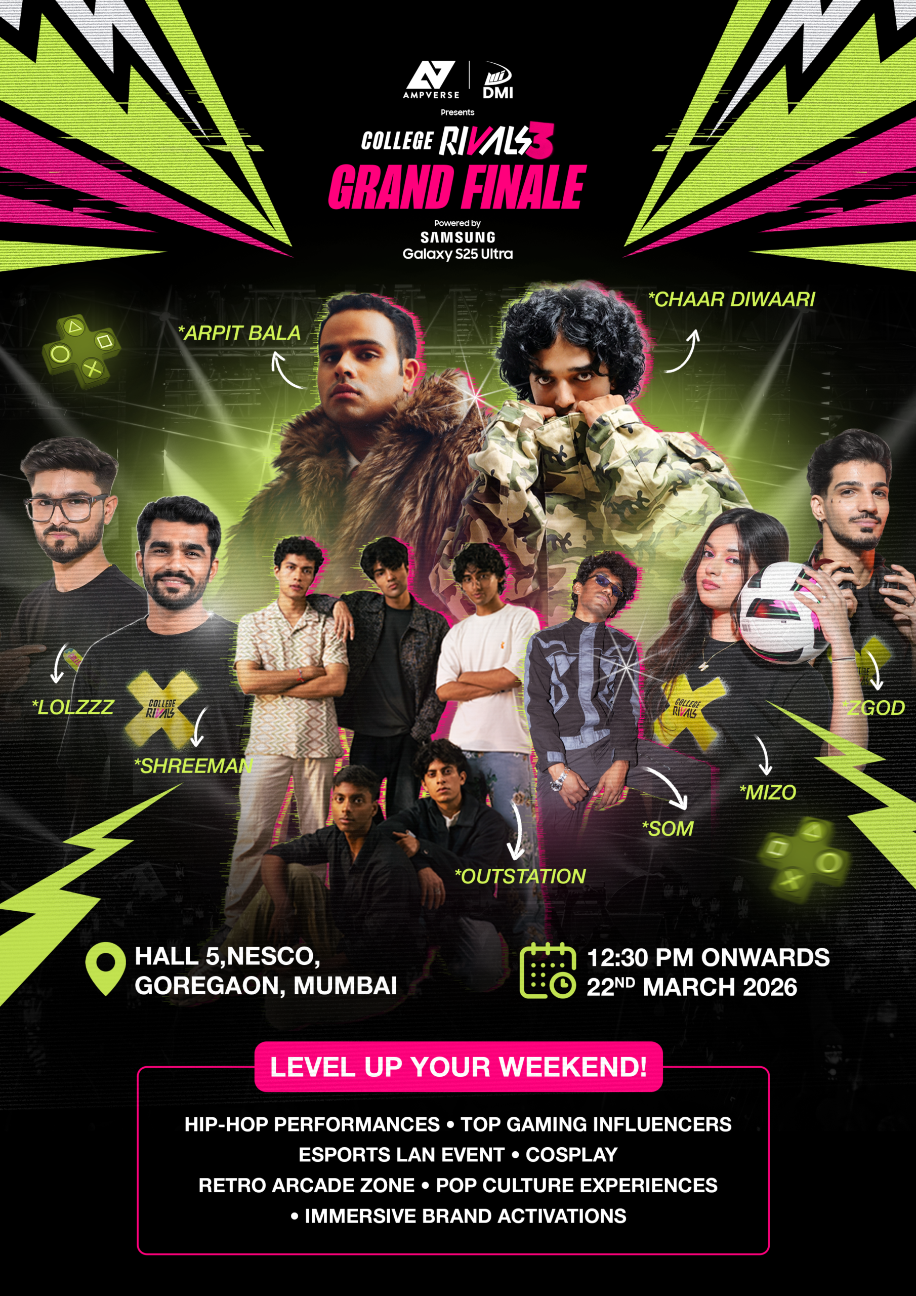 Mumbai, March 19, 2026: Known for dominating college fests and streaming charts alike, Chaar Diwaari, Arpit Bala, Soham (SOM) and Outstation will take center stage at the Ampverse DMI-owned College Rivals Season 3 Grand Finale powered by Samsung Galaxy S25 Ultra at Nesco Hall 5 on March 22.