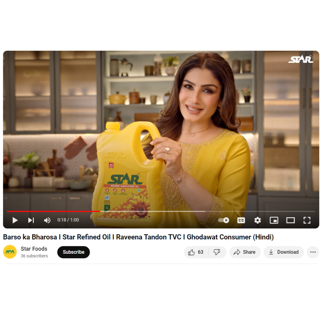 Raveena Tandon is one of the most respected actresses and a Padma Shri awardee. Ever-green as the ‘Queen of Bollywood’ from the 90s creates a powerful emotional connection with consumers, making her an ideal brand ambassador. Shubham Shukla, Marketing Head at Ghodawat Consumer outlined the campaign’s strategic approach; “Our overall strategy allocates 20% of our marketing budget for creative production and 80% for platform distribution. Out of that, 60% will be dedicated to brand-building initiatives to foster long-term consumer relationships, while 40% will focus on sales promotions. Partnering with Raveena brings a fresh perspective to STAR Refined Oil, and her authenticity will strengthen our brand equity.”