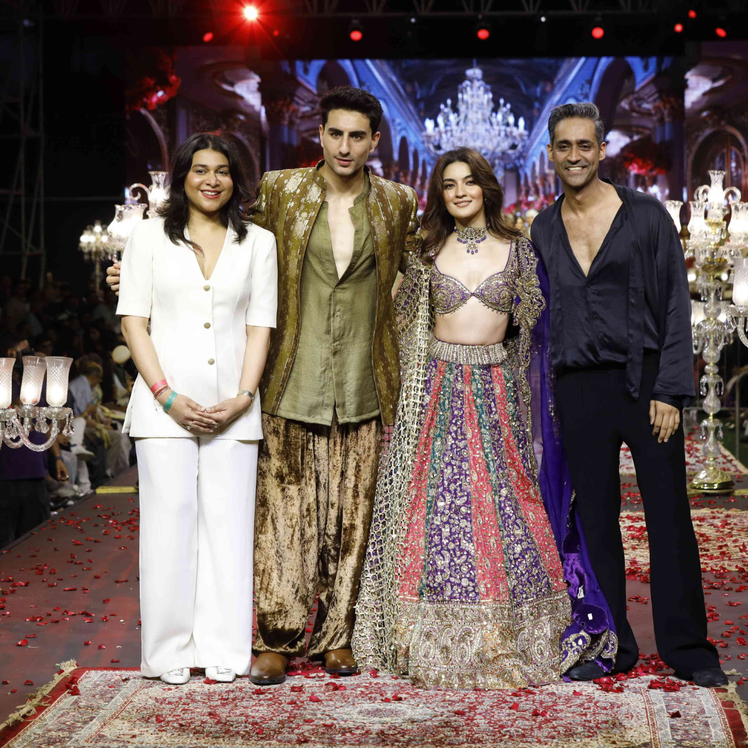 Rooted in the grandeur of Indian heritage, the collection draws inspiration from the opulence of royal India and traditional craftsmanship. The ensembles reinterpret the intricate beauty of jadau jewellery through embroidery, with ornate motifs reminiscent of heirloom jewels delicately hand-embroidered across rich textiles. The showcase opened with Pratibha Ranta walking the runway in ITRH, while Ibrahim Ali Khan closed the show.