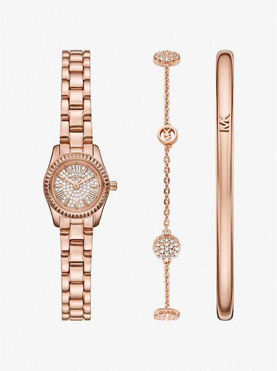 When it comes to gifting, a little sparkle goes a long way. This mini timepiece, crafted from stainless steel and accented with pavé stones, adds just the right touch of shine for festive moments. Paired with a sleek bangle and a pavé charm bracelet, this set makes a beautiful choice for the mehendi or haldi ceremony.