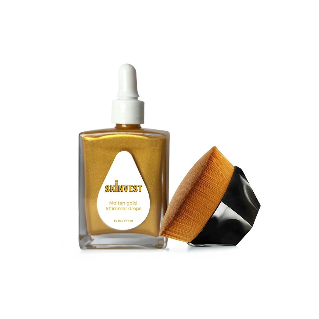 With regular use, Molten Gold Shimmer Drops help improve skin softness, boost suppleness, and deliver long-lasting glow without compromising comfort. It’s the ultimate upgrade for any beauty routine, your daily moment of luxury, bottled. Apply a few drops directly onto the skin and buff using the applicator brush or hands. Allow 30 seconds for a transfer-proof set. For a softer, subtle glow, mix one drop with moisturizer or foundation.