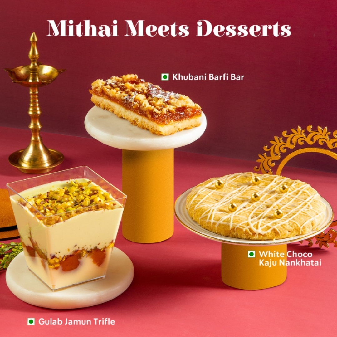 • Khubani Barfi Bar: A deliciously buttery shortcrust base topped with a perfect mix of sweet Khubani (apricot) jam and buttery crumble – a treat that’s equal parts fruity and crumbly!