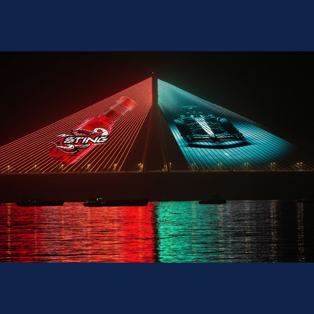 In a spectacular showcase of innovation and partnership, Sting Energy and Mercedes-AMG Petronas F1 Team came alive through stunning outdoor projections at some of the most iconic landmarks across three countries in Asia. The visual experience brought together the dynamic Sting Energy logo and the legendary Mercedes-AMG Petronas F1 Team emblem in a seamless fusion of energy and performance.